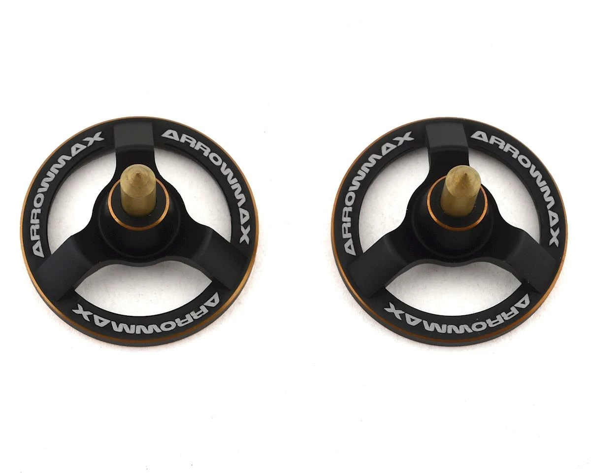 The Arrowmax Black Golden Chassis Balancing Tool makes it easier to achieve a perfectly balanced side-to-side RC car. On most touring car chassis, there will be small dimples or holes in the center on the front and rear. Simply install the tools into these spaces and then add/remove weight as needed until perfect left/right balance is achieved.