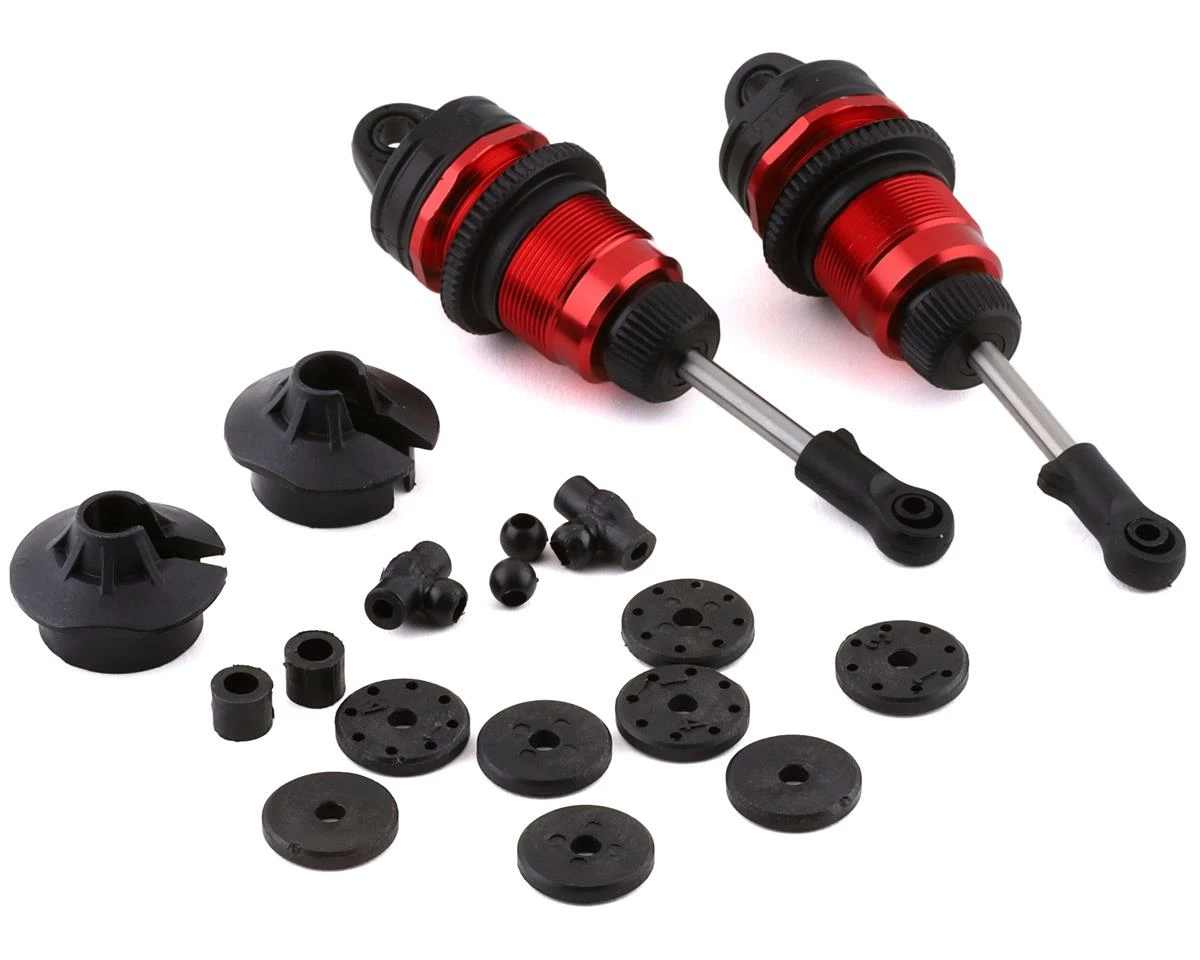 This is a pack of two Arrma 87mm Shocks with a 16mm Bore, intended for use with the Arrma Infraction and Limitless. Package includes two factory assembled shocks, and additional shock pistons for tuning. Does not include shock oil or shock springs. Â