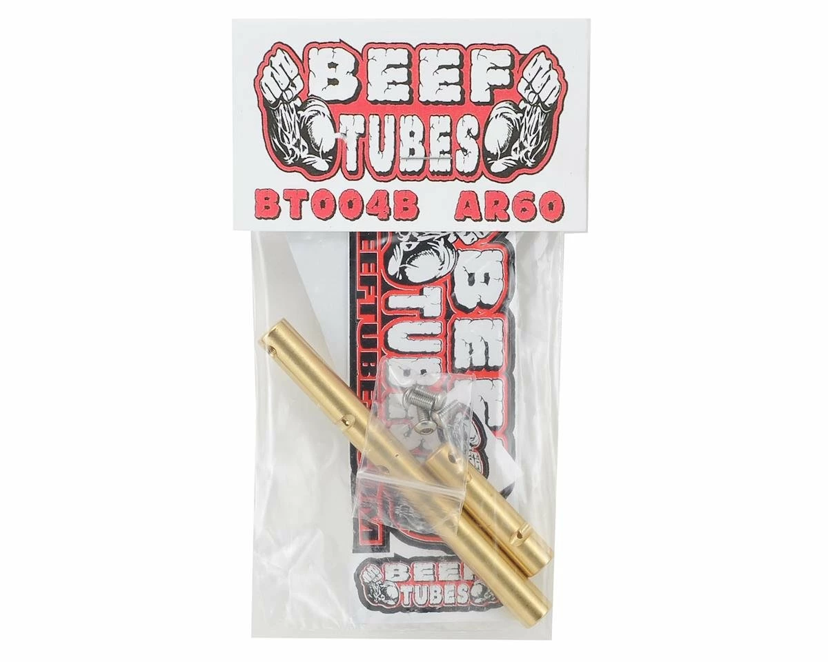 Beef Tubes AR60 Standard Brass Beef Tubes are cheap insurance to increase the durability of your rig, while at the same time improving performance. They add 1.5 ounces of weight per axle, and the weight is held down low to provide a lower CG! Plus, they add strength to the axle housing itself to help prevent snapping the housing in half. Another benefit is that they give you a solid metal mount for the c-hub screws, instead of the stock plastic that normally holds the c-hub screws and strips out easily.