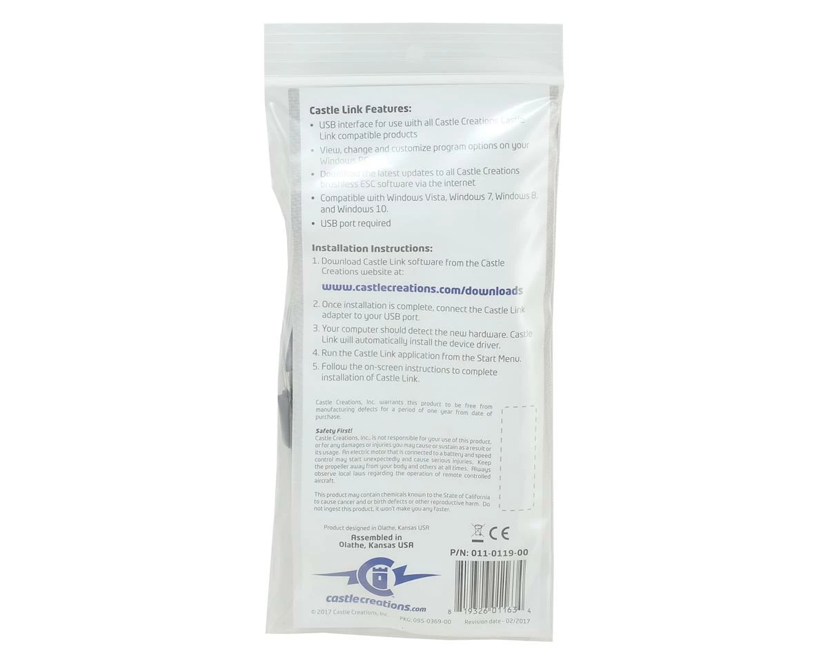 The Castle Creations Castle Link contains a proprietary interface adapter and standard USB cable that will give you in depth access to the programmable parameters of your Castle Creations ESC. All you need is an available USB port on your PC.