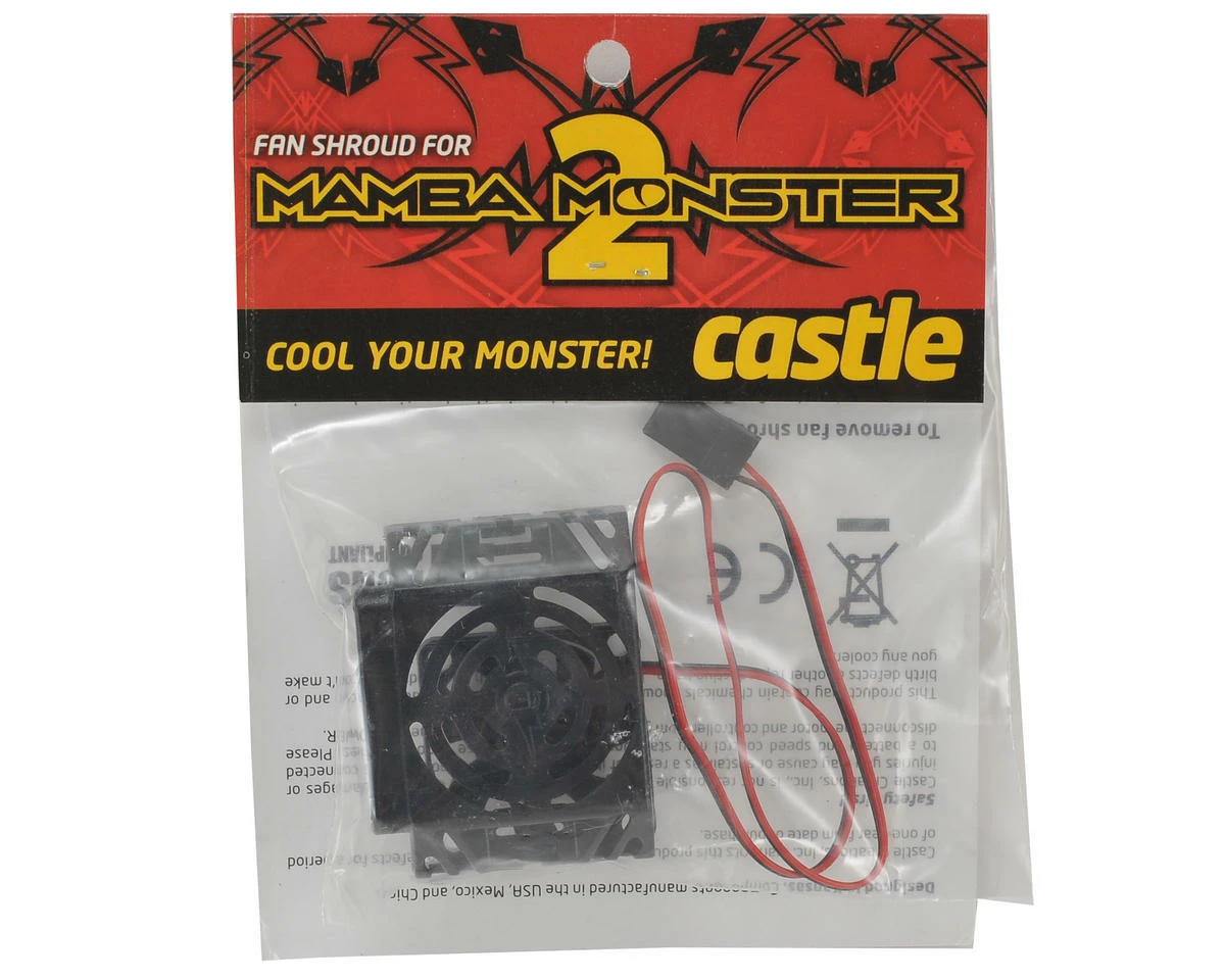 This is a replacement Castle Creations Monster V2 “CC Blower” Fan, intended for use with the Mamba Monster 2 ESC. Package includes fan shroud and fan to fit Mamba Monster 2.