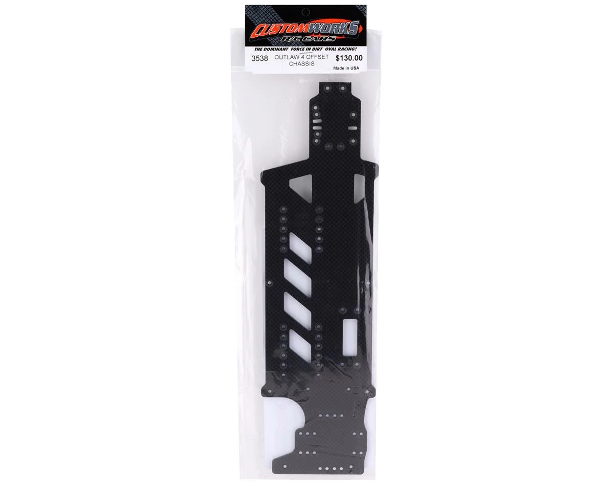 The Custom Works Outlaw 4 Offset Chassis is a great option for high bite tracks where foam tires are being used. Most of the parts from the Outlaw 4 will transfer over, requiring only the CSW3539 shock tower (sold separately) to use the chassis. To mount the body, the CSW3226 body post and the CSW3435 are required separately. Package includes one carbon fiber chassis.