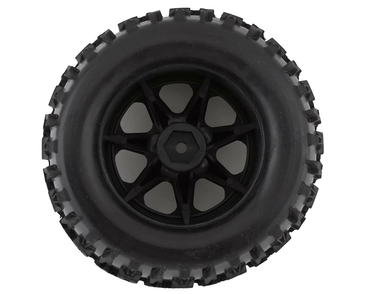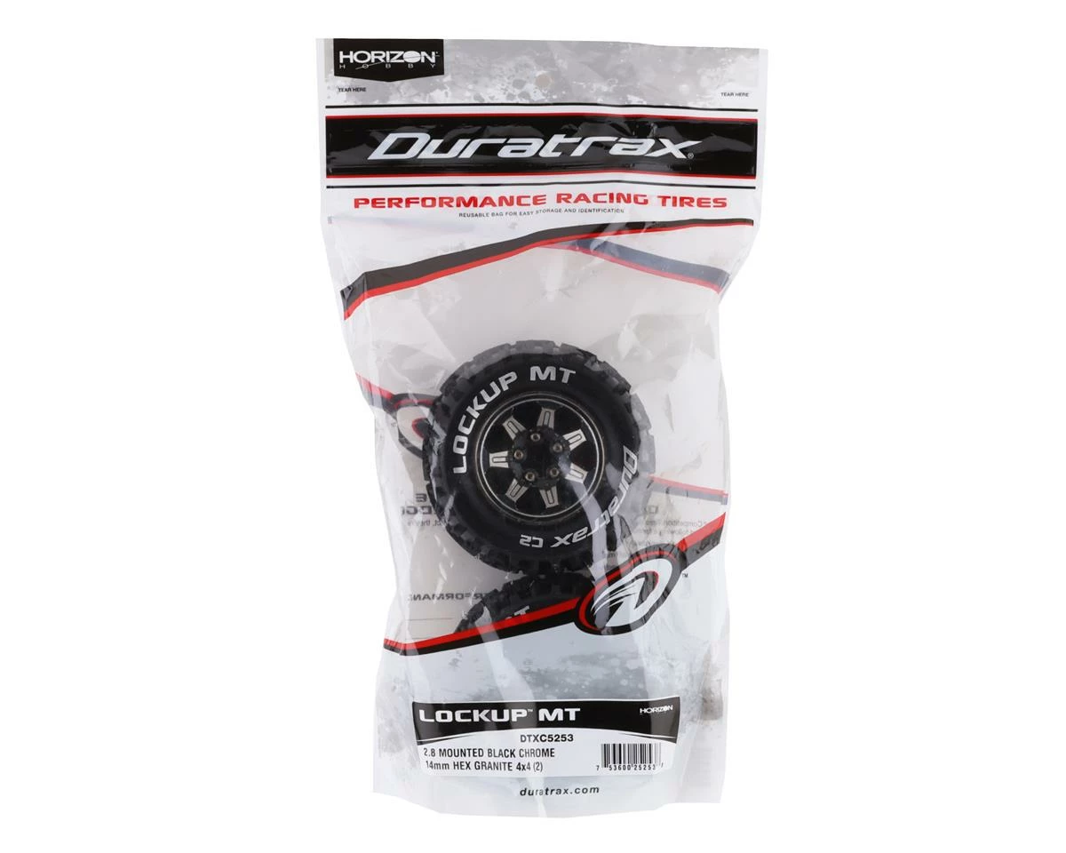 DuraTrax Lockup MT 2.8″ Pre-Mounted Monster Truck Tires. These tires feature a random pattern off road tread and are great for bashing. Package includes two pre-mounted tires.