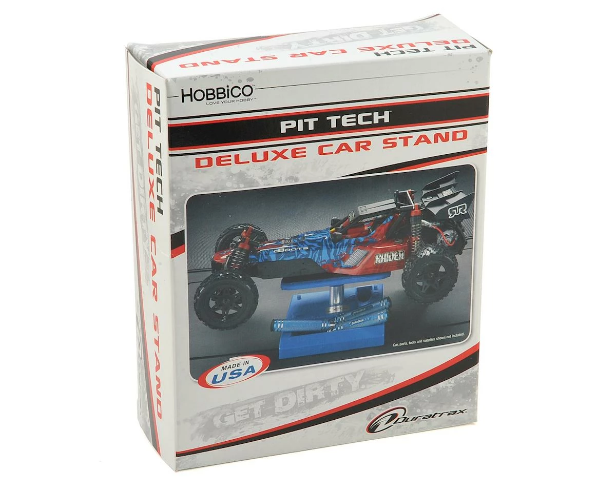 The Duratrax Pit Tech Deluxe Car Stand is a convenient workstation for your cars and trucks. No matter where you are, or where you are going, the sturdy stand disassembles easily and stores flat, making it perfect for carrying in a toolbox or field bag.