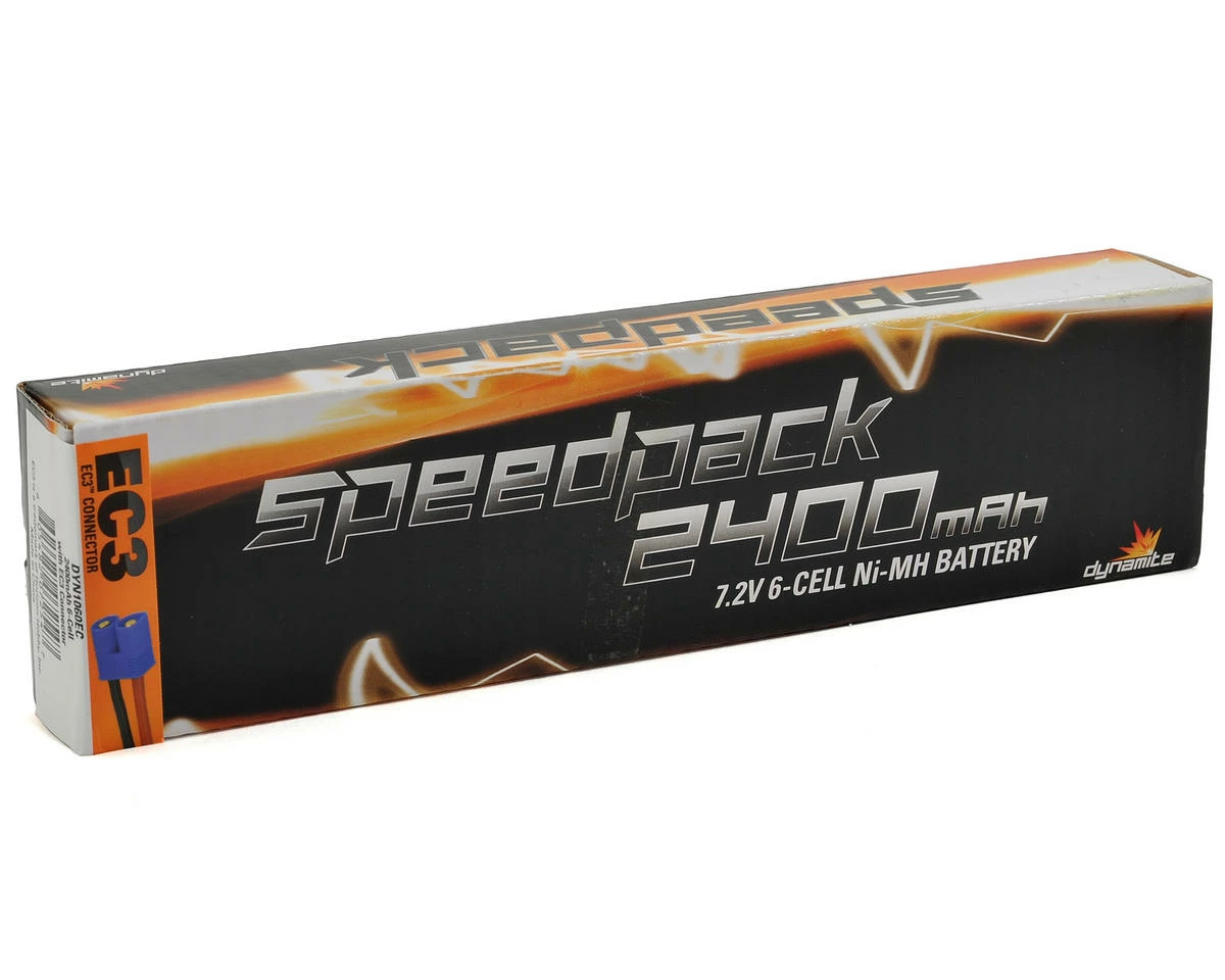 This is the Dynamite Speedpack 6-Cell 7.2V Flat NiMH Battery Pack, with an EC3 Connector. This battery features 2400mAh of capacity and an EC3 connector to quickly pair with your EC3 connected electronic speed controller and battery charger.
