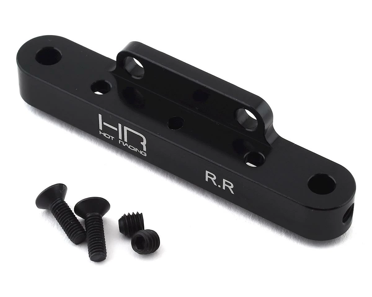 This Hot Racing Arrma 1/8 Aluminum Rear/Rear Suspension Mount, intended for use on the rear lower suspension of Arrma 1/7 On Road and 1/8 4X4 vehicles.