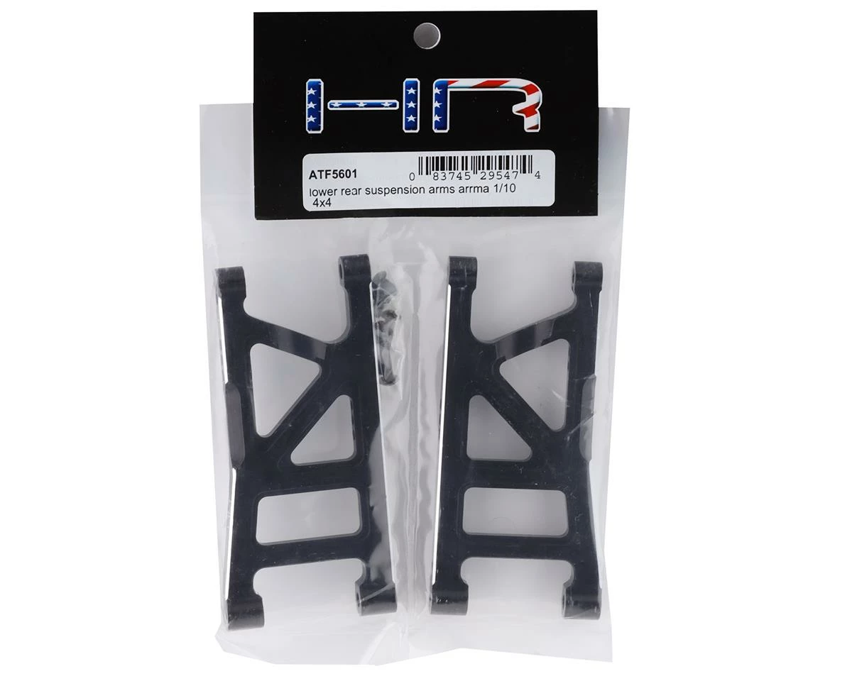 Hot Racing Arrma 4×4 Aluminum Rear Suspension Arms are an optional upgrade intended for use with Arrma 4×4 vehicles. These stylish and durable parts are CNC machined from light weight aluminum, given a sleek black coating and finished with chamfered edges and etched HR logo.