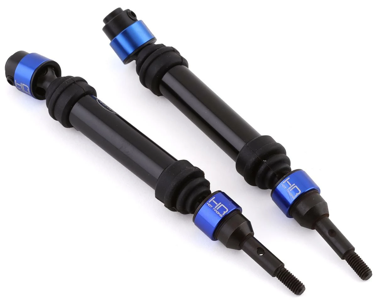 This is a set of Hot Racing Slash 4×4 Light Weight Front Metal CV Splined Drive Shafts, an optional upgrade heavy duty splined star drive axle kit for the Traxxas electric Stampede 4X4, Slash 4×4, Rustler 4X4 models.