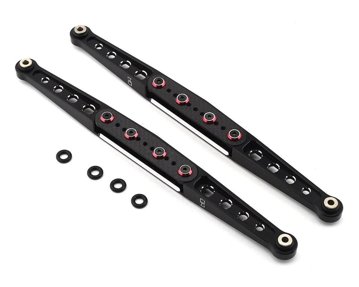 - CNC machined 6061 aluminum lower links with thick carbon fiber outer side plates