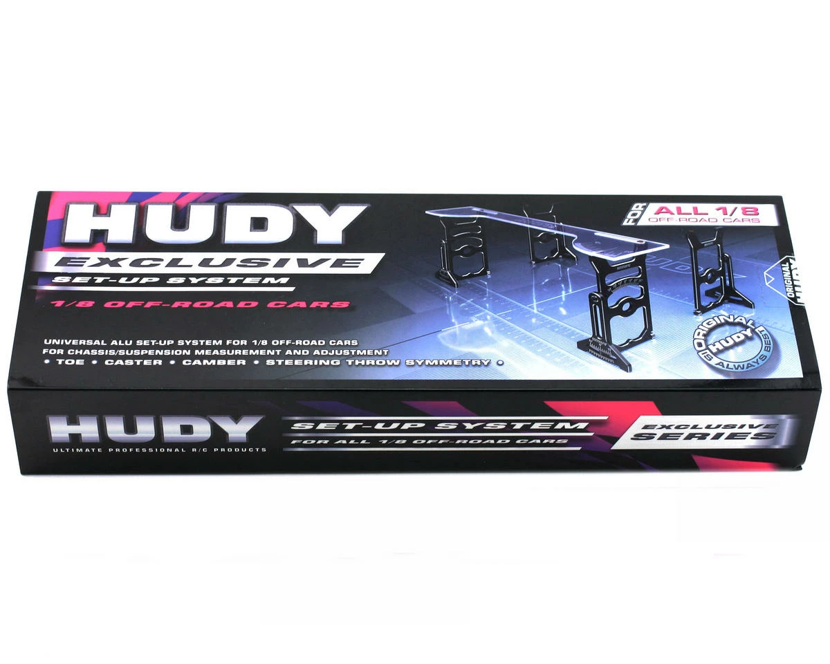 This is the Hudy Universal Set-up System for all 1/8 off-road cars and fits all 1/8 nitro off-road cars, as well as 1/8 GT class on road cars. Having the best car setup is one of the most important factors in winning races. The Hudy Set-Up System is the best and most popular set-up tool in the RC world!