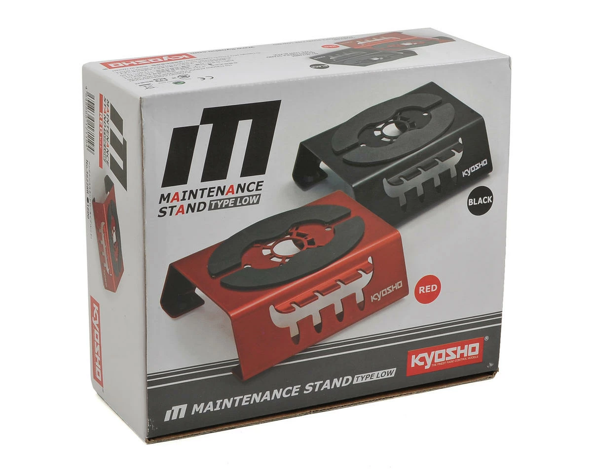 This Kyosho Car Maintenance Stand is perfect for low maintenance and features an integrated shock holder on one side and a screw magnet on the other side.