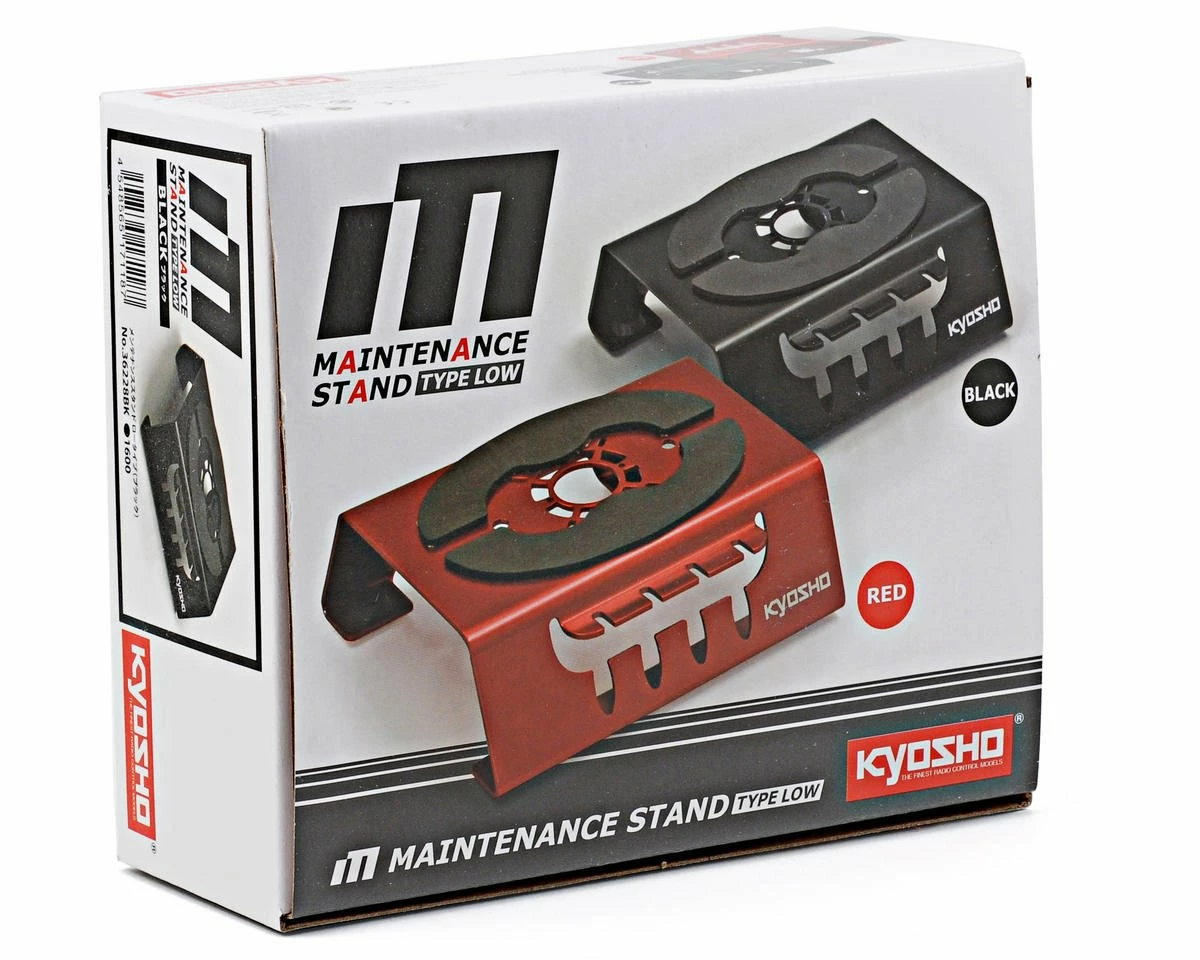 This is the Kyosho “Low Type” Car Maintenance Stand. This stand is suitable for all cars up to 1/8 buggies, and features an integrated shock holder, as well as a screw magnet to hold your screws during maintenance.