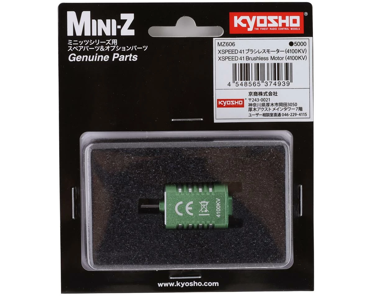 Kyosho Mini-Z XSPEED 41 Brushless Motor. Package includes one 4100KV motor with factory installed male bullet connectors.