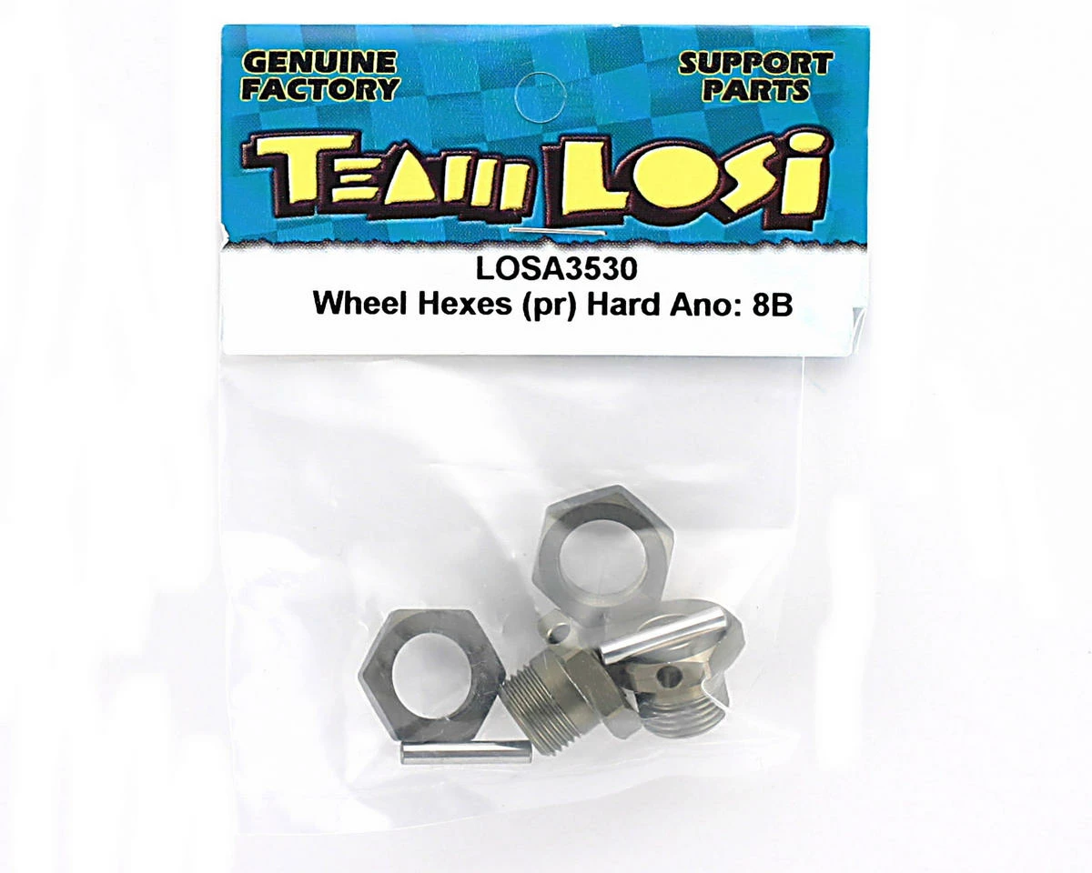 This is a pack of two replacement wheel hexes for the Losi 8IGHT racing buggy. These wheel hexes are universal and can be used for the front or rear of the buggy.