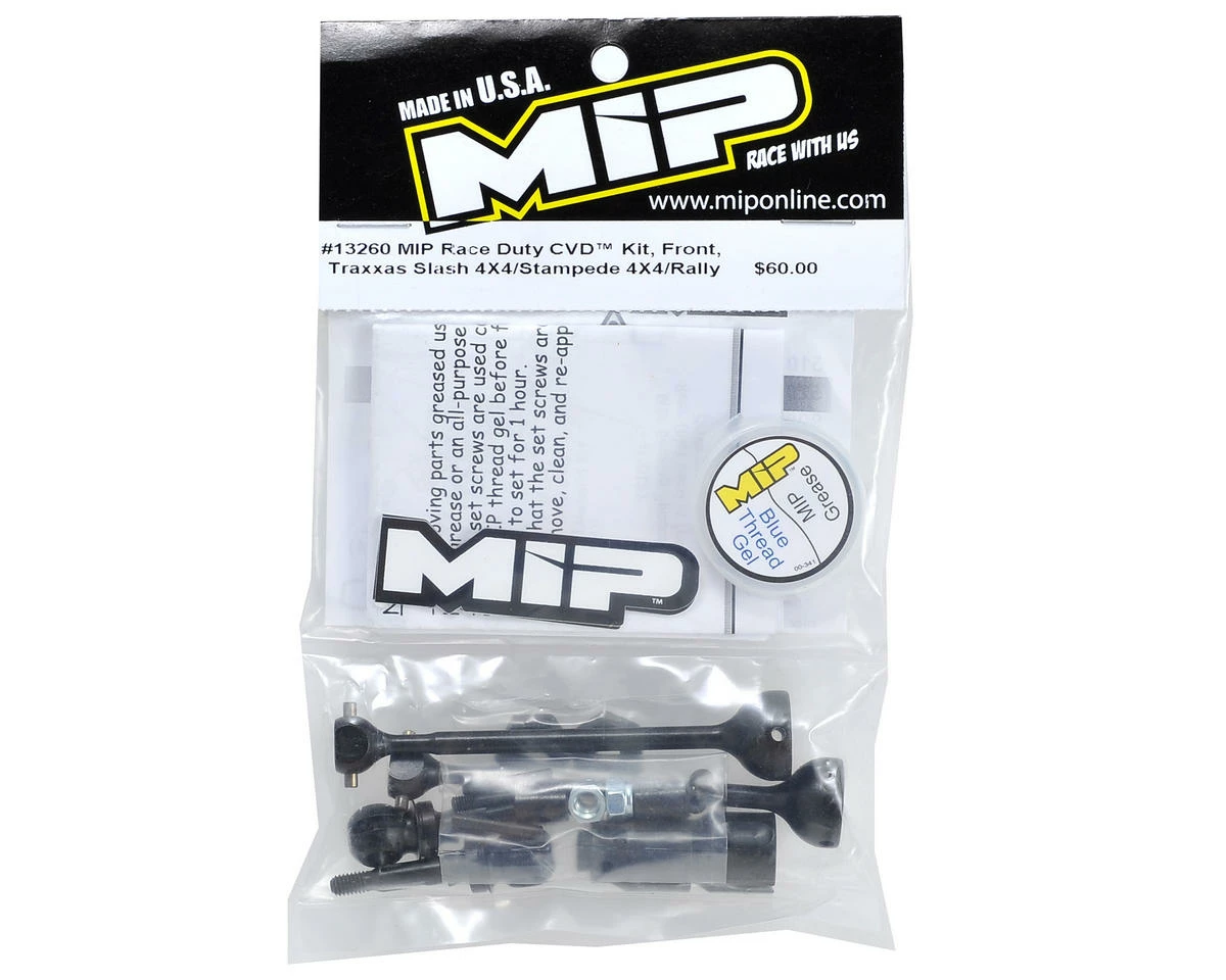 This is an optional MIP Steel Slash 4×4 “Race Duty” Front CVD Kit. This kit is compatible with the Traxxas Slash 4×4 and Stampede 4×4 trucks, as well as the Traxxas Rally. MIP’s Steel Race Duty line of axles feature precision machined aircraft grade steel driveshafts and X-Duty axles to deliver durability and strength that cannot be matched by the stock components. Another added benefit of the Race Duty system is increased bone travel, so the power delivery stays smooth throughout the entire range of suspension travel, with no binding. Steel Race Duty guarantees that your Traxxas rig can be pushed to the edge of insanity and beyond.