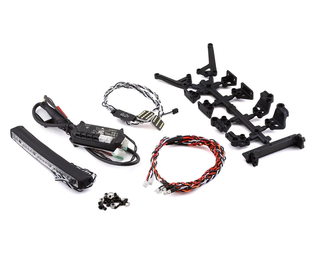 MyTrickRCÂ DG-1 Axial SCX10 II XJ LED Light Kit. This optional light kit is a great way to add extreme scale looks to your Axial SCX10 II equipped with the XJ body. Super bright attack headlights are included for extreme illumination. This kit uses the DG-1 Light Controller that can be controlled through an open channel for a remote on/off feature. Get the MyTrickRC SCX10 II XJ and add killer looks to your RC rock crawler.