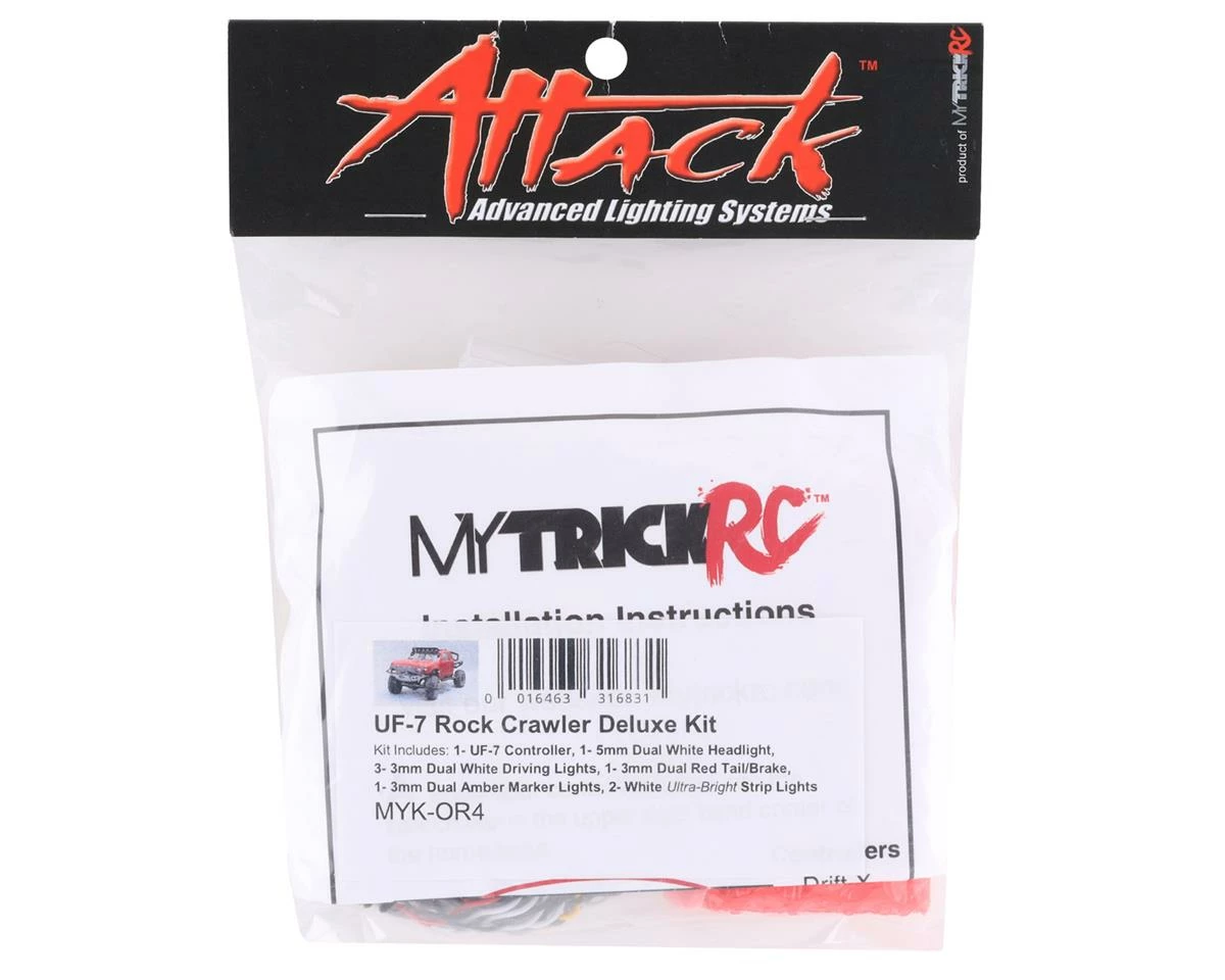 The MyTrickRC Rock Crawler Deluxe Light Bar Kit with UF-7 Controller is a great kit to get headlights, taillights, rock lights and light bar lights onto your rock crawler. This Light Package is unlike any other light kit on the market. This kit was designed in California by RC enthusiasts just like you, with an attention to detail that cannot be matched by other systems. By combining quality lighting components with realistic effects, this kit will impress with uncanny realism and stunning brightness.