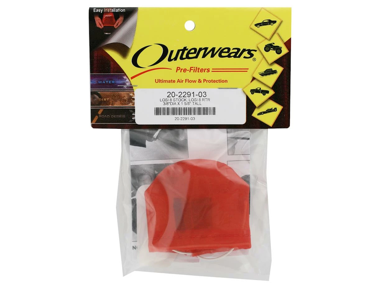 Outerwears Pre-filters are designed to enhance the efficiency of anyperformance or exposed air filter. The Pre-filter is constructed with aproprietary polyester mesh with uniform micron openings, treated withan optional hydrophobic water-repellent process. The mesh is UVresistant, filters debris down to .005”, is shatter proof in freezingtemperatures, and resistant to heat up to 450 degrees. The material ispuncture resistant and has elasticity characteristics allowing thethreads to return to the original position in the event the threadshave been impacted or shifted. The manufacturing process incorporates awelded seam for strength, eliminating needle holes and potentialfailure points in the material. The top seam utilizes specializedthread and cording to reinforce durability of the top. Four stockcolors are available in either regular or the water-repellent variety.Pre-filters are designed to deflect the damaging debris, which clogsair filters, compromising peak air-flow and horsepower. The Pre-filteralso extends the time between servicing intervals reducing costs andincreasing convenience for the consumer.