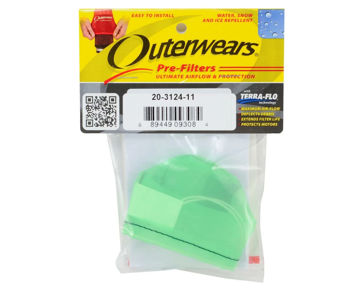 Outerwears Pre-filter Air Filter Covers are designed to enhance the efficiency of any performance or exposed air filter. The Pre-filter is constructed with a proprietary polyester mesh with uniform micron openings, treated with an optional hydrophobic water-repellent process. The mesh is UV resistant, filters debris down to .005”, is shatter proof in freezing temperatures, and resistant to heat up to 450 degrees. The material is puncture resistant and has elasticity characteristics allowing the threads to return to the original position in the event the threads have been impacted or shifted. The manufacturing process incorporates a welded seam for strength, eliminating needle holes and potential failure points in the material. The top seam utilizes specialized thread and cording to reinforce durability of the top. Four stock colors are available in either regular or the water-repellent variety. Pre-filters are designed to deflect the damaging debris, which clogs air filters, compromising peak air-flow and horsepower. The Pre-filter also extends the time between servicing intervals reducing costs and increasing convenience for the consumer.