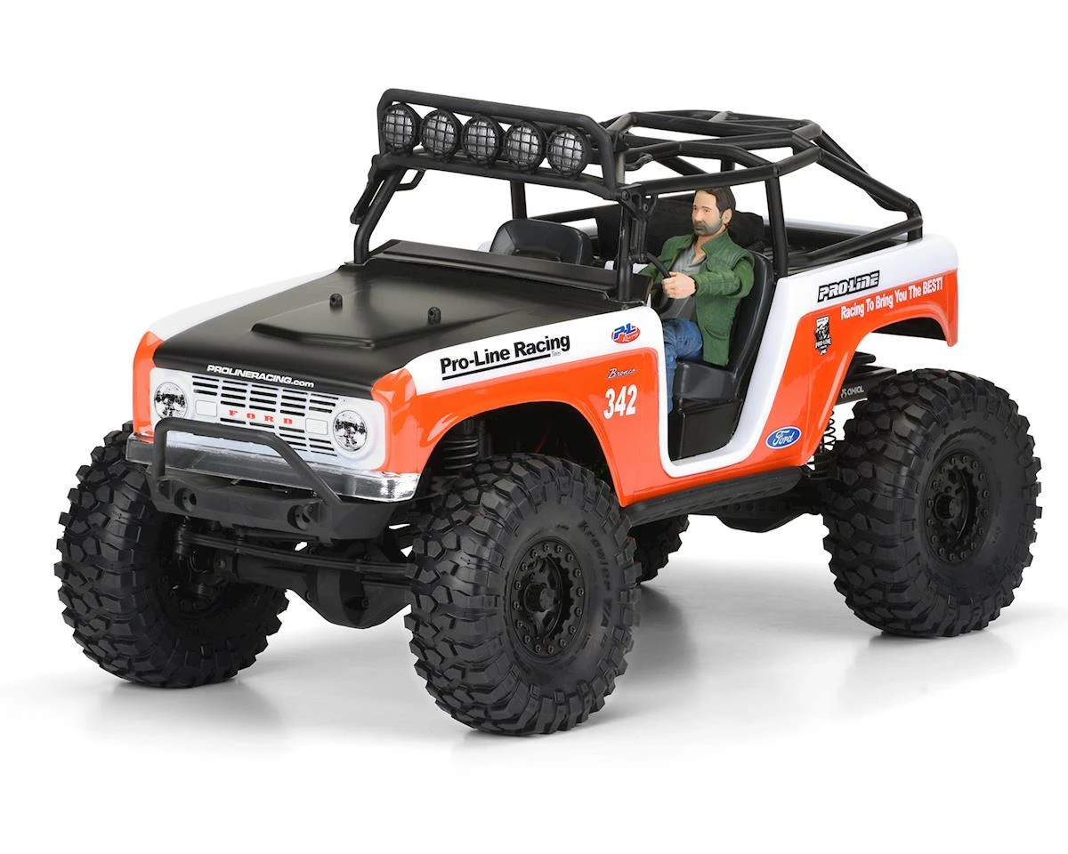 The Pro-Line 1966 Ford Bronco Body is perfect for the Axial Deadbolt, G6 and other 300mm wheelbase rigs. The iconic look of the 1966 Ford Bronco has been captured in every detail, and will take your Deadbolt from average rig, to a rugged, trail ready off-road machine in a few easy steps! This ultra detailed body works with the stock Deadbolt/G6 cage, and features a full depth interior allowing you to have full length driver figures for incredible scale realism. Plus, the included dash panel adds another layer of detail not found in most bodies and is designed to work with the stock Deadbolt plastic steering wheels found in the spare parts bag.