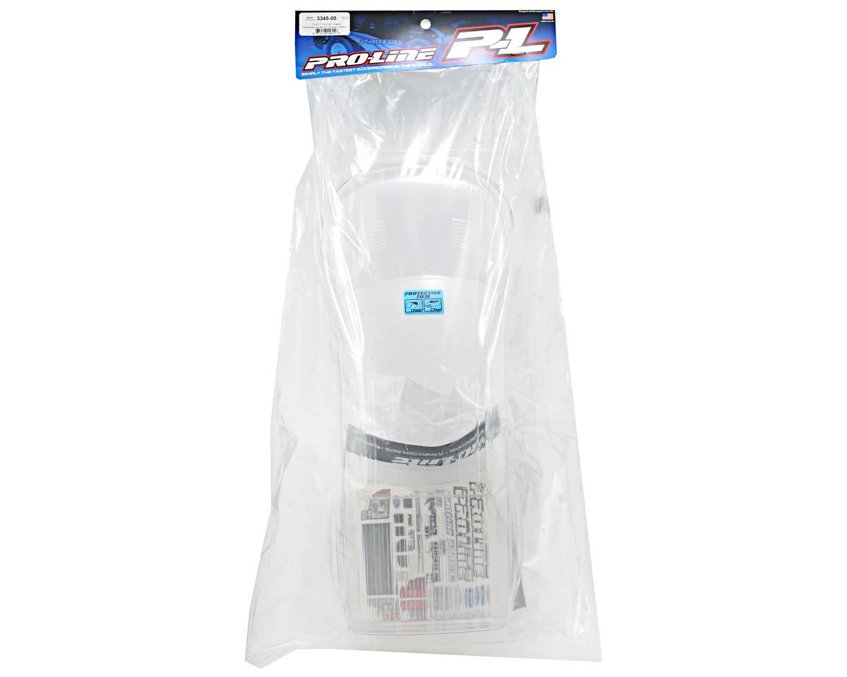 This is the Pro-Line Ford F-150 SVT Raptor Clear Body and is intended for use with the Traxxas Revo 3.3, T-Maxx 3.3, E-Maxx 3903, E-Revo and HPI Savage. The full-size Ford Raptor SVT was designed for serious off-road abuse and now you can give your monster truck the same look! The Raptor has a bold grill that tells everyone to get out of your way and hood fins that prove it is a serious racing truck. Every detail of this modern icon was re-created to give your truck the ultimate in off-road styling. When you see your Raptor SVT mounted on your monster truck, you will realize that this is exactly what you have been waiting for.