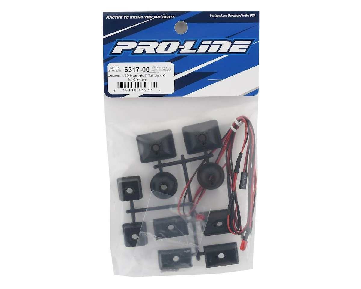 This is the Pro-Line Universal LED Headlight and Tail Light Kit for Rock Crawlers. If you are like us, you want to use your RC car at any time of the day or night and this Light Kit allows you to do that while adding even more Scale Realism.