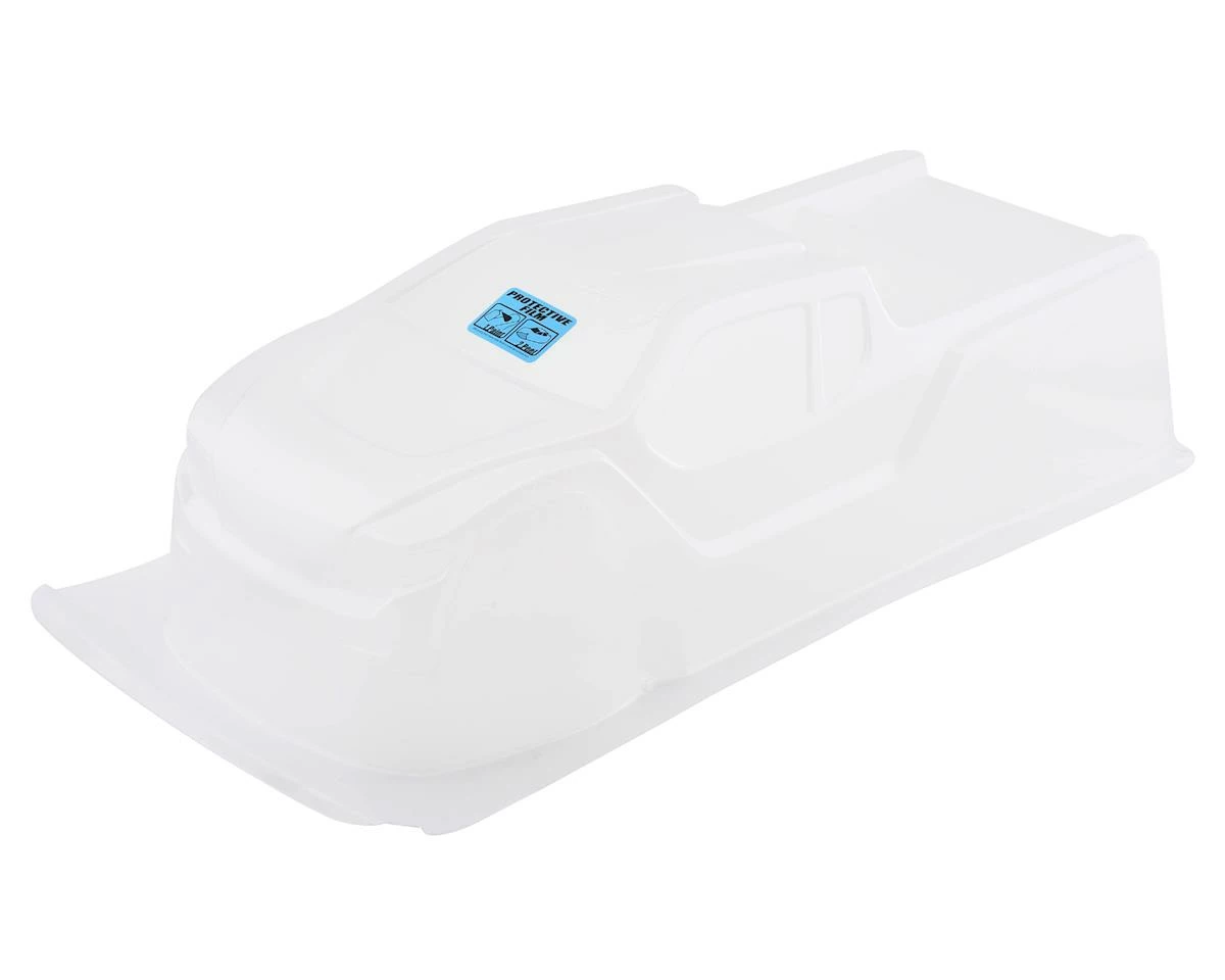 The Pro-Line War Hawk Body was designed by Adam Drake and inspired from the success of the Enforcer. The War Hawk retains the aggressive stance of the Enforcer but adds in some sleek, modern truck styling. It features a swooping roof and bed sections for improved airflow and high-speed stability. The hood of the body is steeper to create more down force over the front wheels for more steering and faster lap times.