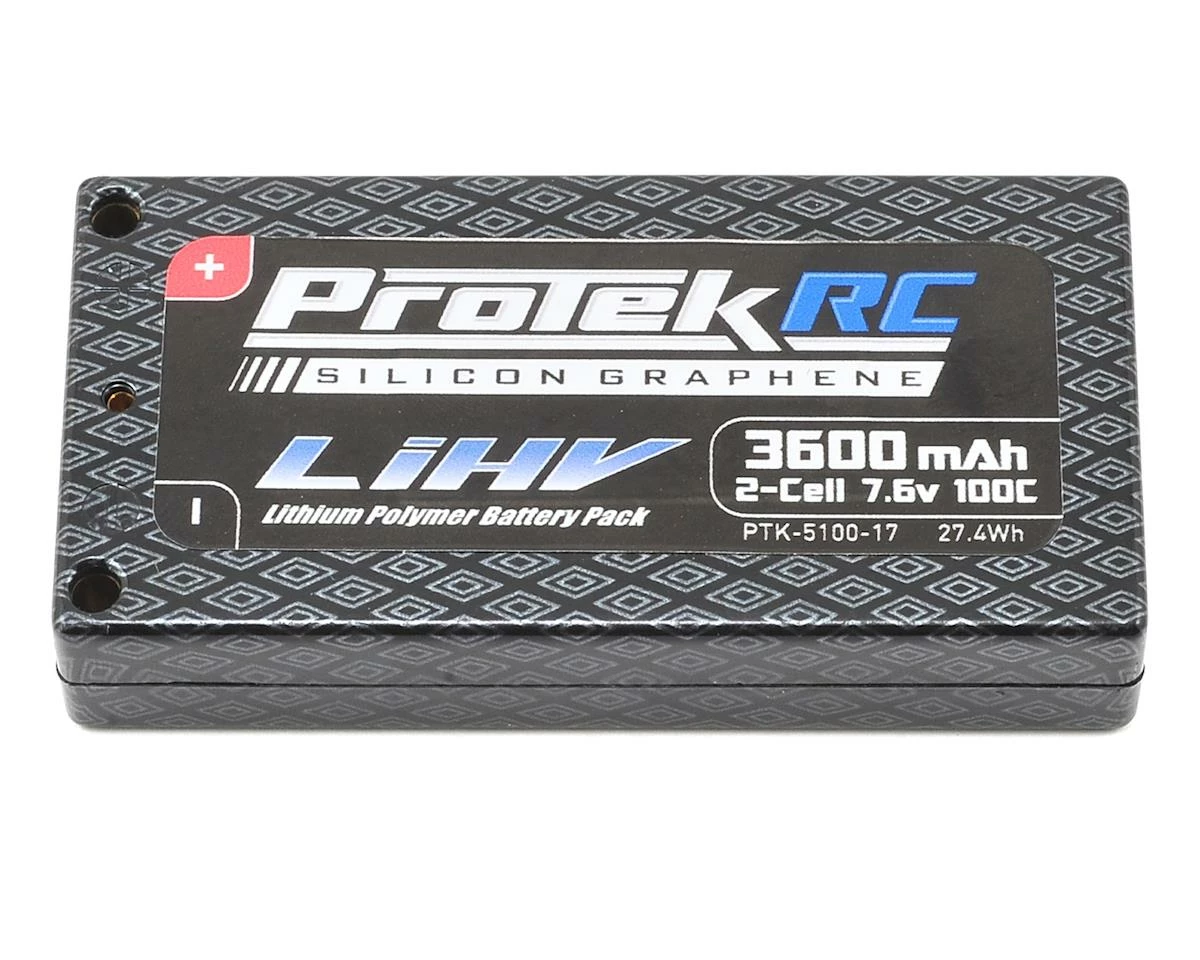 ProTek R/C Silicon Graphene 100C LiPo batteries are the next step in the evolution of LiPo battery technology. Silicone Graphene construction offers improved efficiency, lower operating temperatures, lower internal resistance, better run time, increased cycle life and increased voltage!