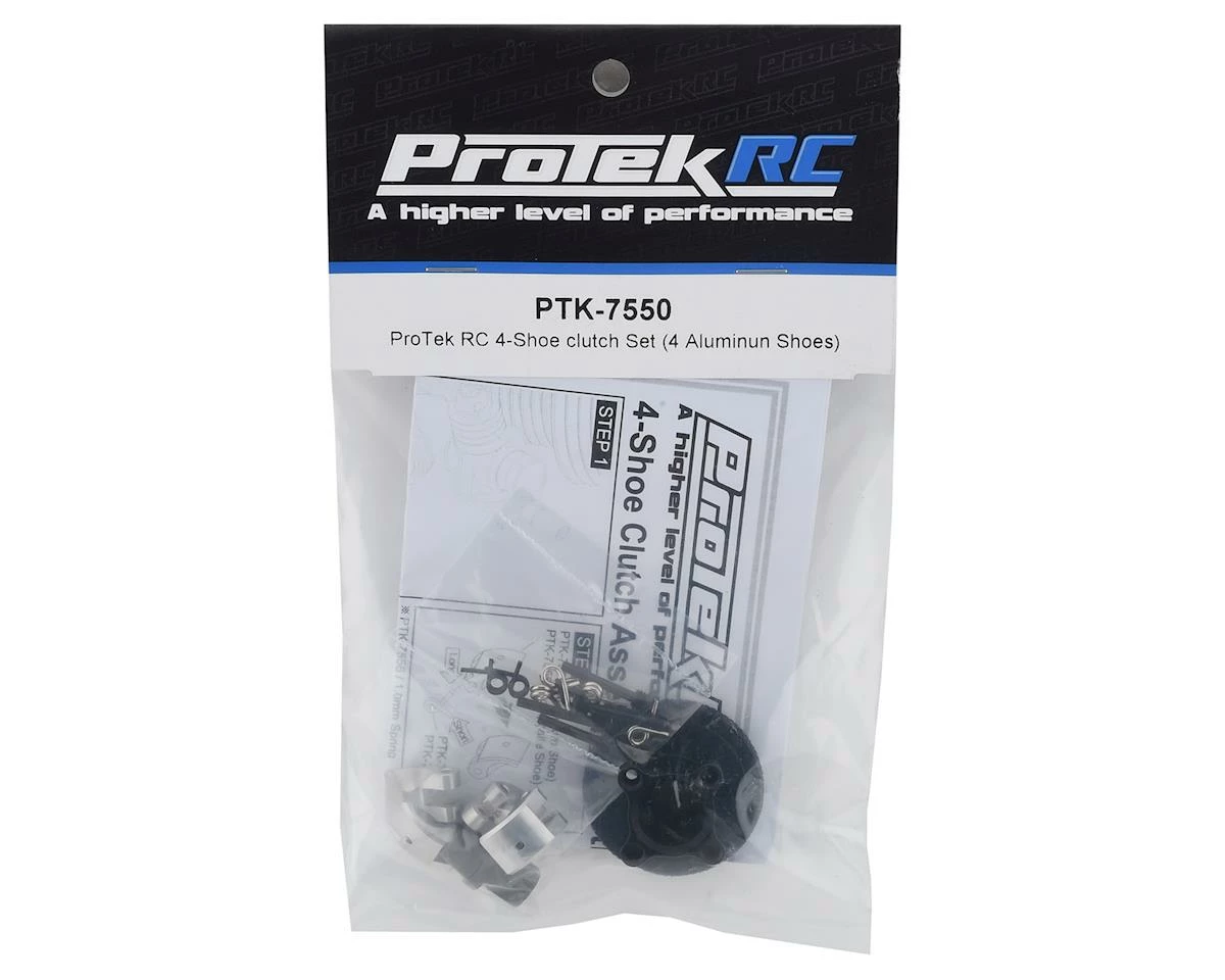 The ProTek RCÂ 4-Shoe Off-Road Clutch Set was developed in collaboration with ProTek team drivers, for discriminating 1/8 scale racers. This premium level clutch features a 34mm aluminum 4 shoe flywheel with removable steel pins so you can replace them when needed. A complete set of four 1.0, and four 0.9 springs are included, so you can mix and match spring rates as needed to tune the engagement to suit your engine, track conditions and personal preferences.