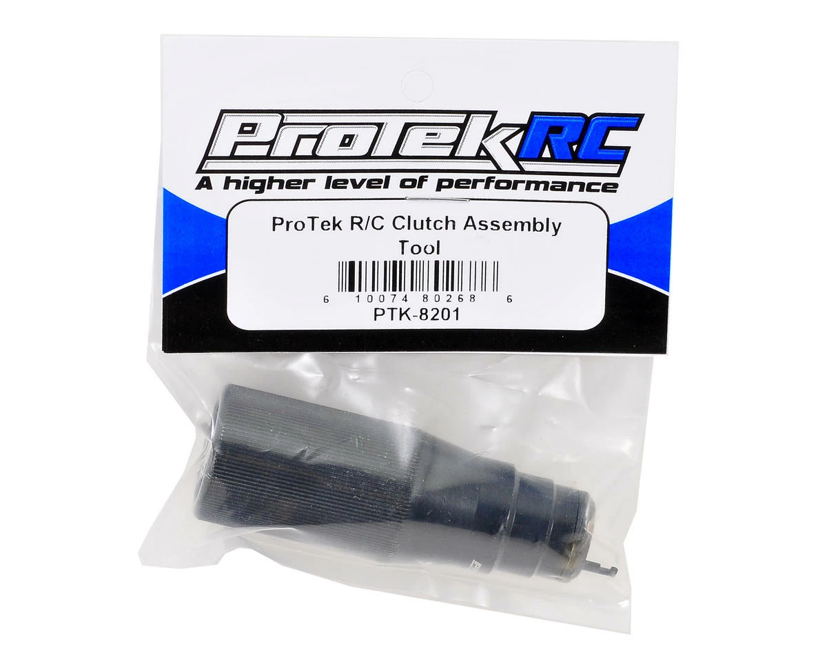 The ProTek R/C “TruTorque” clutch assembly tool simplifies clutch shoe removal and installation. This tool helps to make a daunting task as easy as a turn of the wrist. Simply slide the end of the tool over the crankshaft of any .12 to .30+ size nitro engine, guide the spring hook under the clutch spring and rotate the handle counter-clockwise to lift the spring out of the groove in the clutch nut. The clutch shoe and spring will slide off the flywheel pin when you pull the tool off the crank.Â