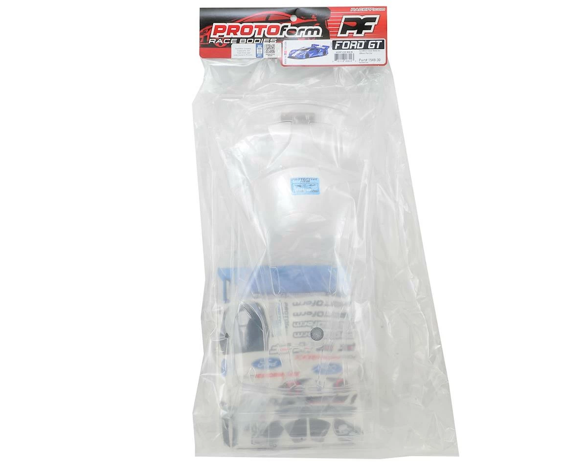 The Pro-Line Ford GT 200mm Pan Car Body features the same ultra-low stance, teardrop-shaped cockpit, and b-pillar “side wings” as the full size Ford GT. PROTOform has captured every detail of this mid-engine sportscar. This officially-licensed body fits 1:10 200mm pan cars for racing in classes such as the World GT-R rubber tire class. For touring car fans, don’t fret: a 190mm version of Ford GT is coming soon.