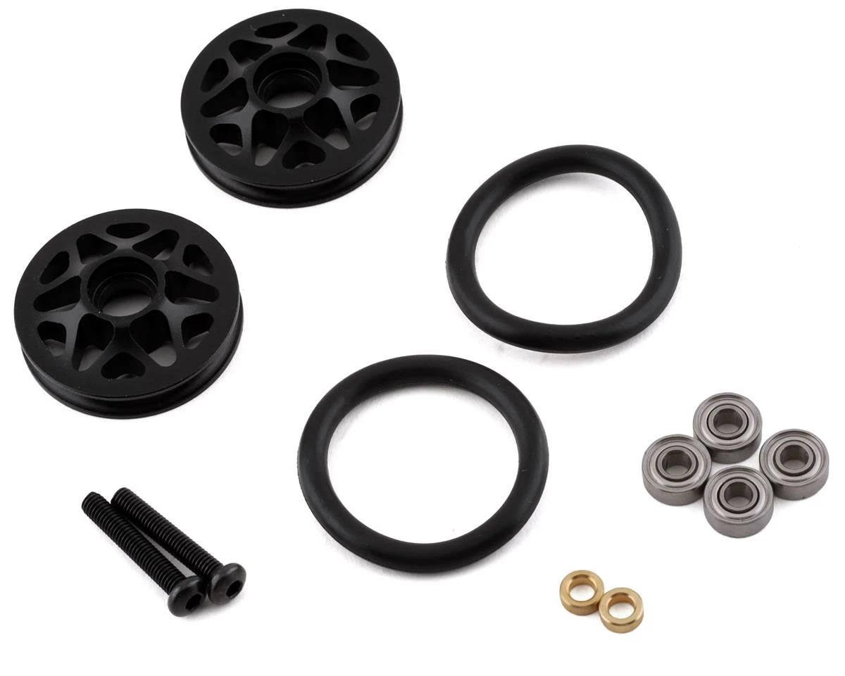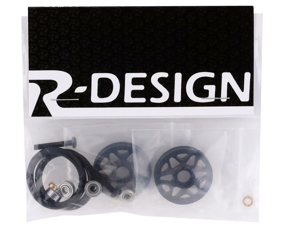 R-Design 30mm Wheelie Bar Wheels are machined from 6061-T6 aluminum. These wheels feature an offset design that allows you to adjust the width of the wheel positions on the bar.Â