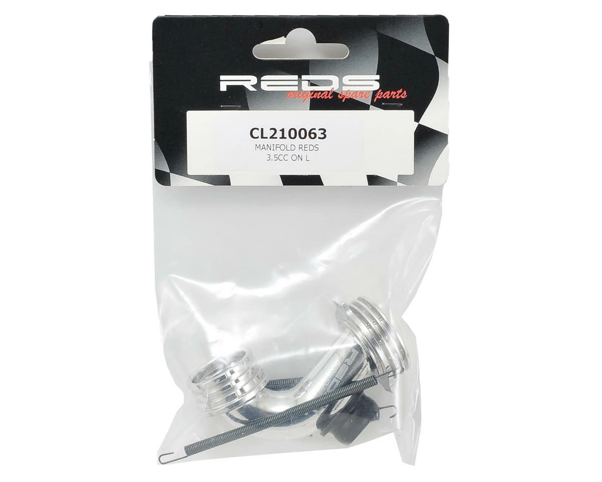 This is the REDS Engines 3.5cc Long On-Road Manifold. This manifold is ideal for the M Series REDS Engines 3.5cc .21 nitro engines. Package includes one gasket, one long spring and two short springs.Â