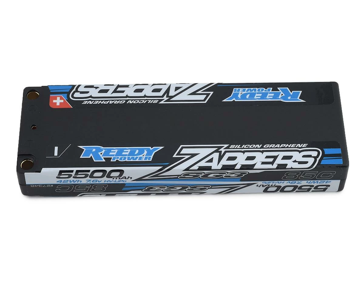 The Reedy Zappers HV SG3 2S 85C Ultra Low Profile LiPo Battery focuses an emphasis on lower internal resistance with improved durability and cycle-life. Zappers SG3 batteries feature a 7.6 nominal voltage, which means that the battery can be safely charged to 4.35V/cell. Even when the typical 8.40V (4.2V/cell) charging limit is enforced, Zappers SG3 cells perform thanks to their inherently flat discharge curve, which results in higher voltage deeper into the race.