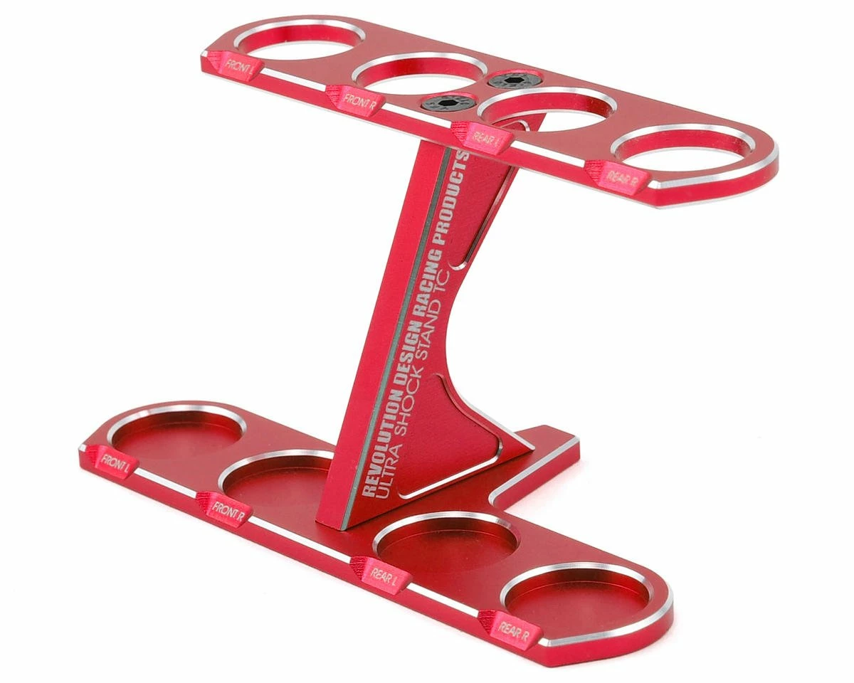 The Revolution Design Racing Products Ultra Shock Stand TC is a handy tool that helps keep your shock parts better sorted during building, rebuilding and setup of your precious touring car shock absorbers.