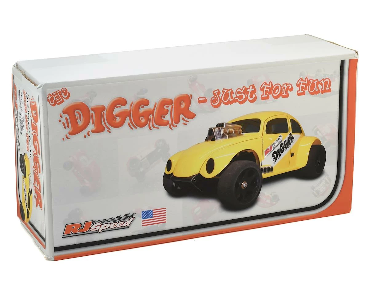 The RJ Speed Digger Fun Car Kit includes all the parts you need to build a rolling chassis. Get ready to have fun, with a simple, easy to assemble kit that is perfect for enthusiasts of all ages! All chassis parts, tires, gears, linkage, and clear coupe body with window masks and protective film are included, so all you need to add is your electronics! It requires a 540 or 550 size motor, an ESC with reverse, 6 cell stick or 2S LiPo battery pack, and a 2 channel radio system with one servo.