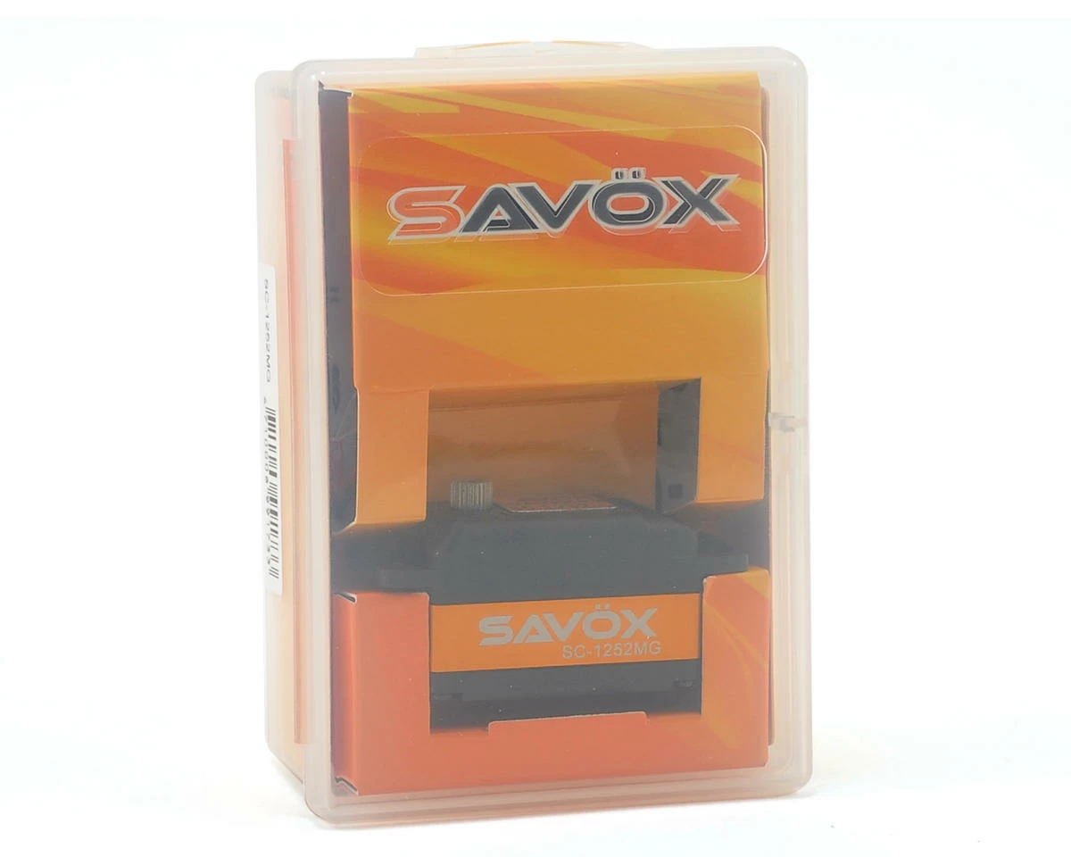This is the Savox SC-1252MG Low Profile “Super Speed” Metal Gear Digital Servo. Low profile dimensions make the SC-1252MG a perfect choice for any vehicle with tight spaces. Ideal for 1/10 scale touring/on-road, the SC-1252MG can also function in planes as a thin wing servo. At .07 (@6.0V sec/60), its super fast response is impressive for steering around the oval or the F1 track. Built tough with durable metal gears.