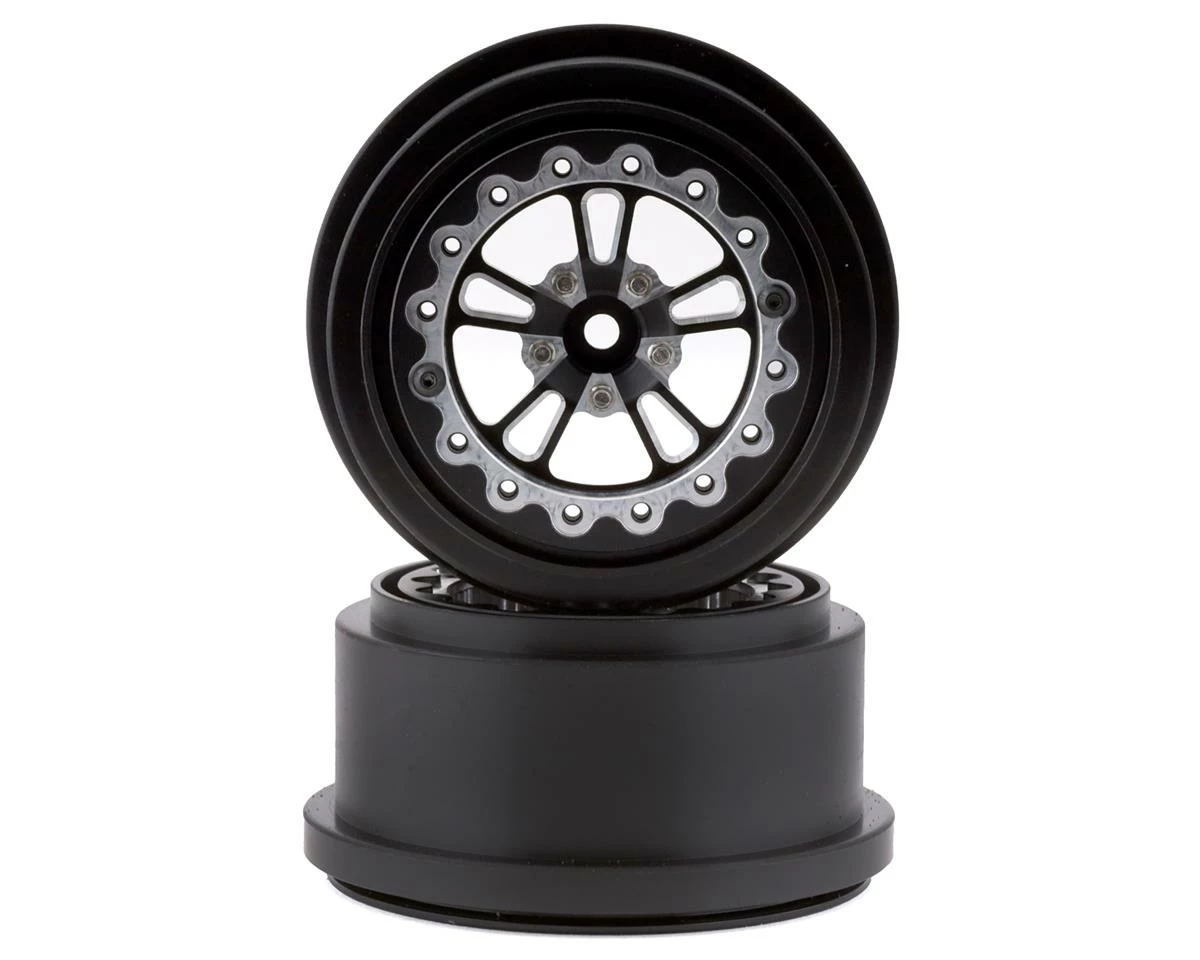 SSD V Spoke Aluminum Rear 2.2”/3.0” Drag Racing Beadlock Wheels are the lightest weight aluminum beadlock option available! These wheels are heavily machined, and feature a delrin inner ring that brings the weight down to 106 grams each. Plus, they feature scale hub bolts to add a higher level of detail, making them perfect for glamor shots and pre-race show n’ shine competitions. Standard 12mm hex and 23.6mm offset provides compatibility with all platforms, and when combined with the matching front wheel (SSD00450), you have a great looking and performing wheel package that cannot be matched by other aluminum drag beadlock wheels.