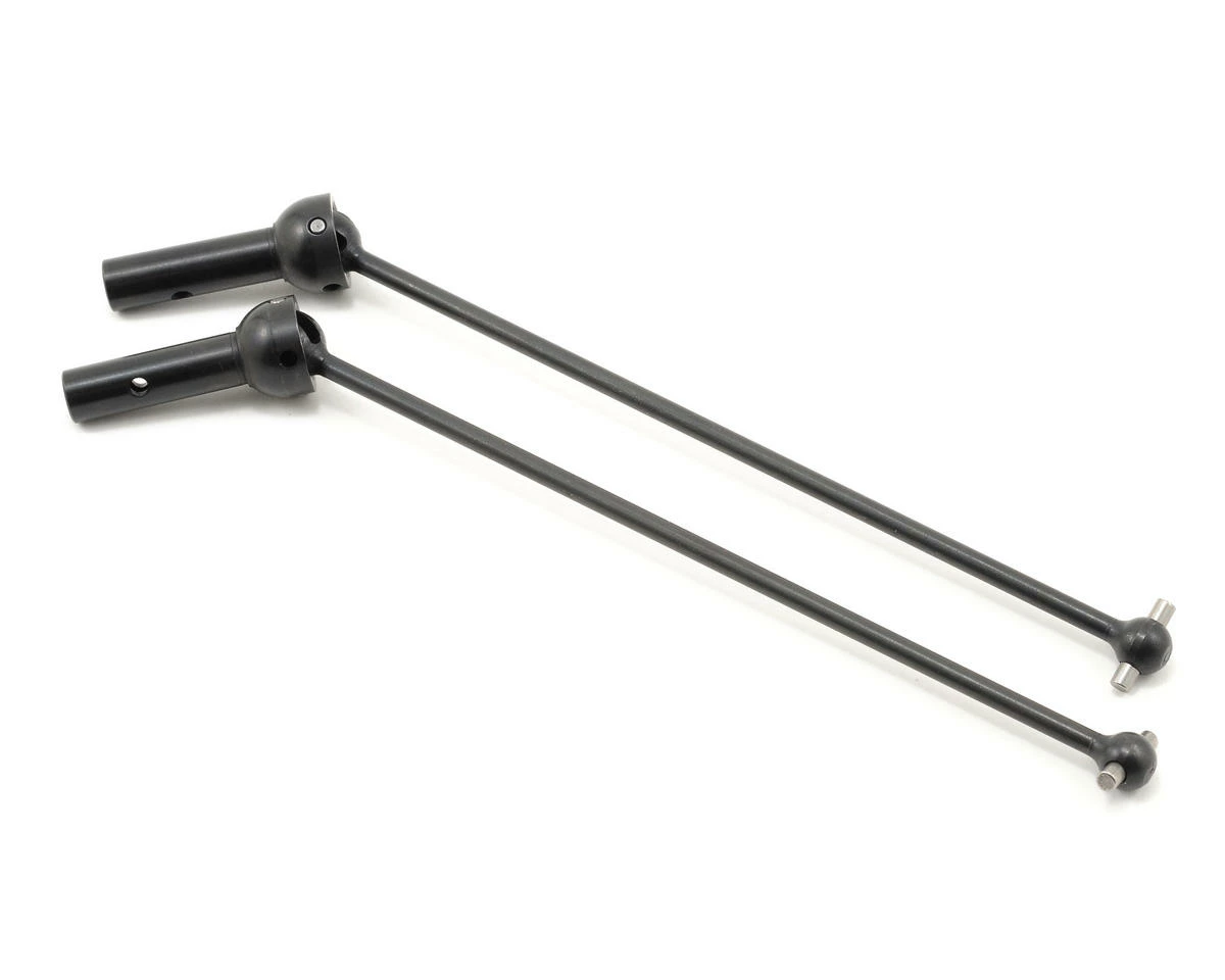 This is a optional Tamiya Lightweight Front/Rear Universal Shaft Set, and is intended for use with the Tamiya TRF801Xt. The lightweight of these Universal Shafts is achieved by reducing the shaft diameter from 4.2mm to 3.4mm. The weight of a single standard shaft is 35g, compared to the lightweight shaft which is 29.5g, which equals a weight saving of 5.5g. Which means when all four shafts are replaced, you can save a total of 22g of rotating mass.