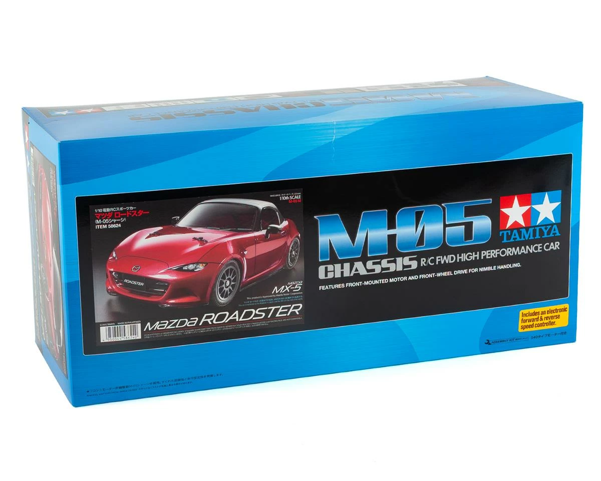 The Tamiya Mazda MX-5 M-05 M-Chassis On Road Kit is a miniaturized replica of the 4th generation Mazda MX-5 (also known as the Roadster in Japan and the Miata MX-5 in the U.S.). This iconic platform enjoys a heritage dating back to 1989 and total sales in excess of 950,000 units. The dynamic and lightweight car was made to amplify the thrill of driving, with a punchy 1.5-liter (2.0-liter in North American market cars) inline 4-engine and 6-speed transmission, while including modern must-haves such as advanced safety equipment.