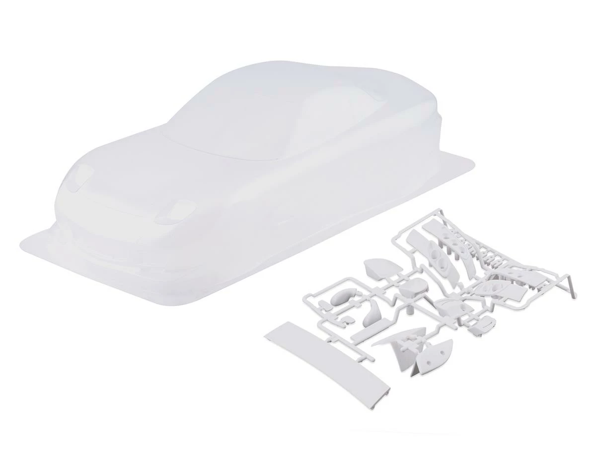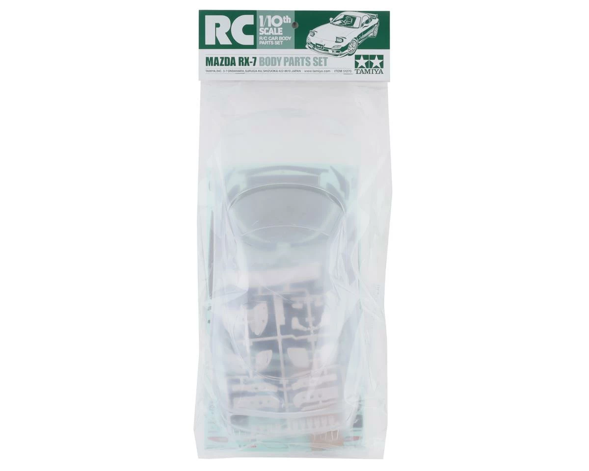 The Tamiya Mazda RX-7 1/10 Touring Car Body with Parts Set is a clear unfinished body that will allow you to choose your own paint scheme. This will work directly with the Tamiya TT01 and TT02, as well as any other 190mm chassis. This detailed body includes spoiler, rear view mirrors, light buckets mirrors and more to help give you the ultimate look.