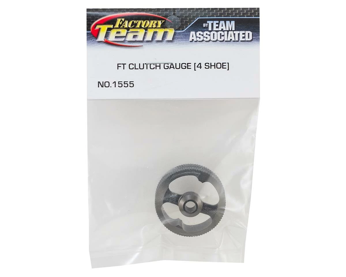 The Team Associated Factory Team Clutch Gauge is a “Go or No Go” style gauge. When the tool is placed over the clutch shoes and rotated in the direction of the arrows, the smallest internal measurement profile of the gauge, 23.40mm, determines if the shoes are too worn – with new shoes, it will turn only slightly; with worn shoes it will turn more. If the shoes are smaller than the tool, replace the shoes for optimal performance. The tool works with a complete clutch assembly either installed or uninstalled on an engine.