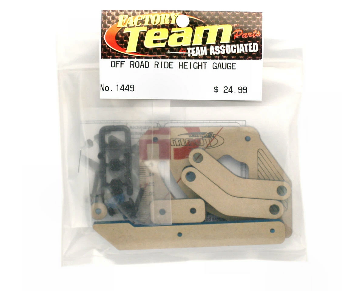 This is the Team Associated Off-Road Ride Height Gauge. Now you can check your ride height on your 1/10 scale off-road trucks and buggys and 1/8 scale on-road or off-road kits. This ride height gauge features acrylic construction and is blue in color.