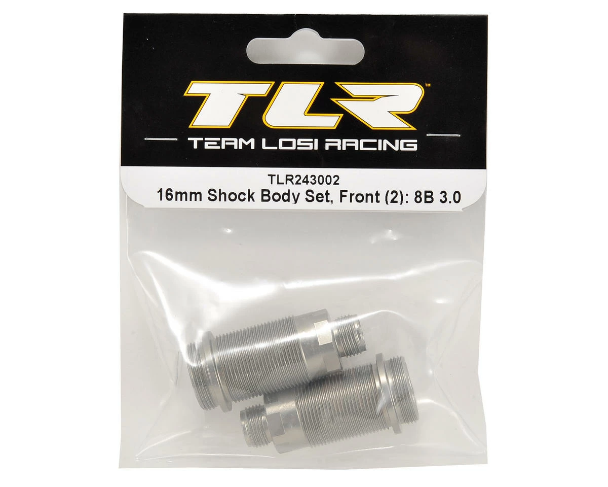This is a pack of two replacement Team Losi Racing 16mm Front Shock Bodies, and are intended for use with the Losi 8IGHT 3.0 1/8 buggy.