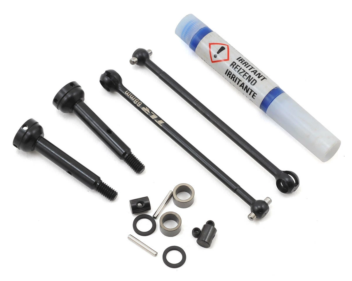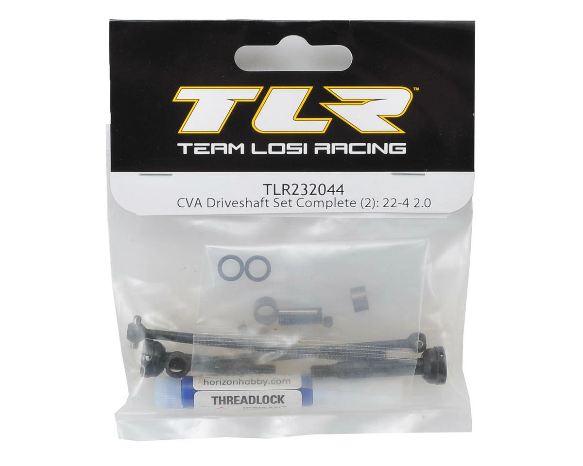 Team Losi Racing 22-4 2.0 Complete CVA Driveshaft Set. Package includes the parts needed to build two replacement driveshafts that can be used in the front or rear position.