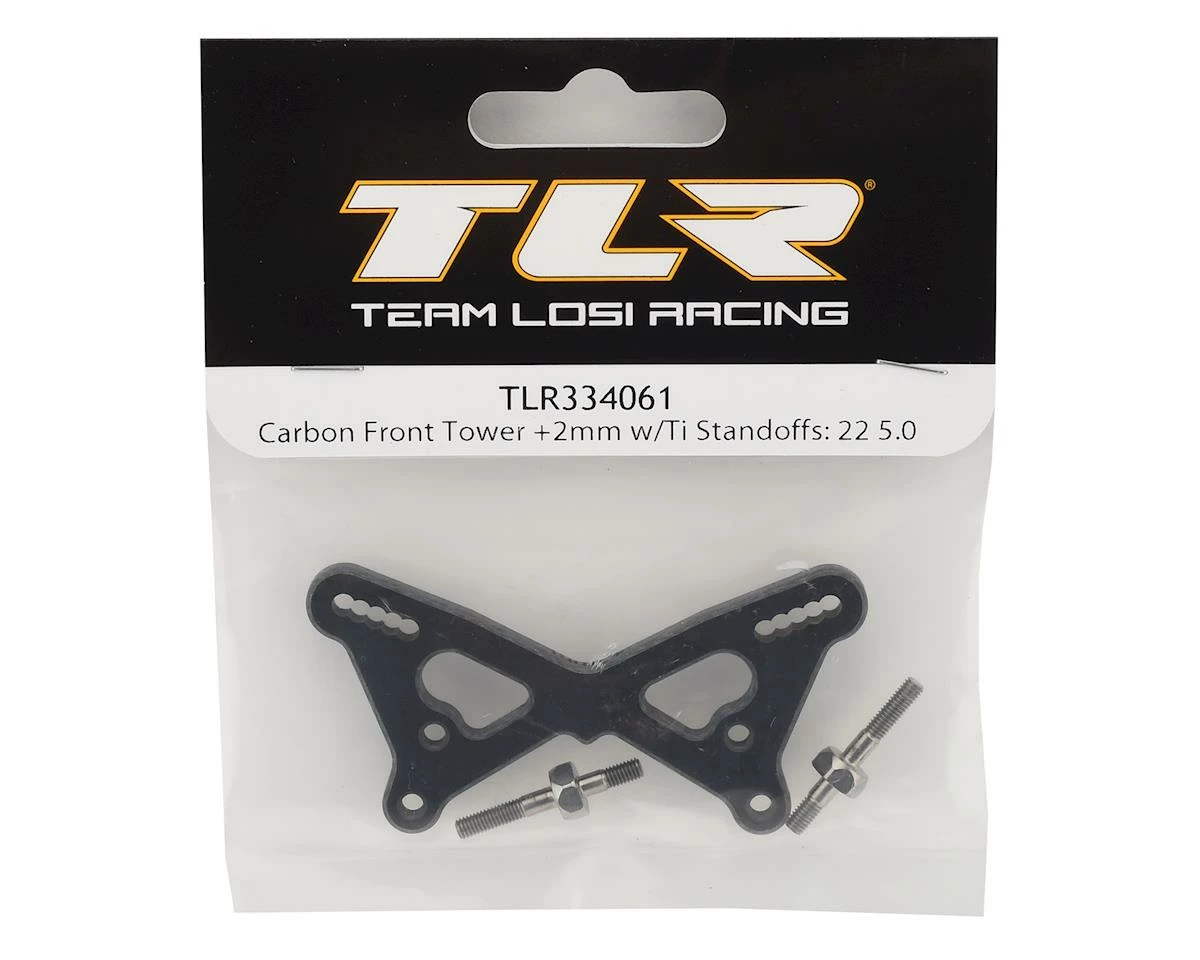 This is a Team Losi Racing +2mm Carbon Front Tower with Titanium Standoffs, intended for use with the Team Losi Racing 22 5.0 2WD Electric Buggies as an optional front tower.