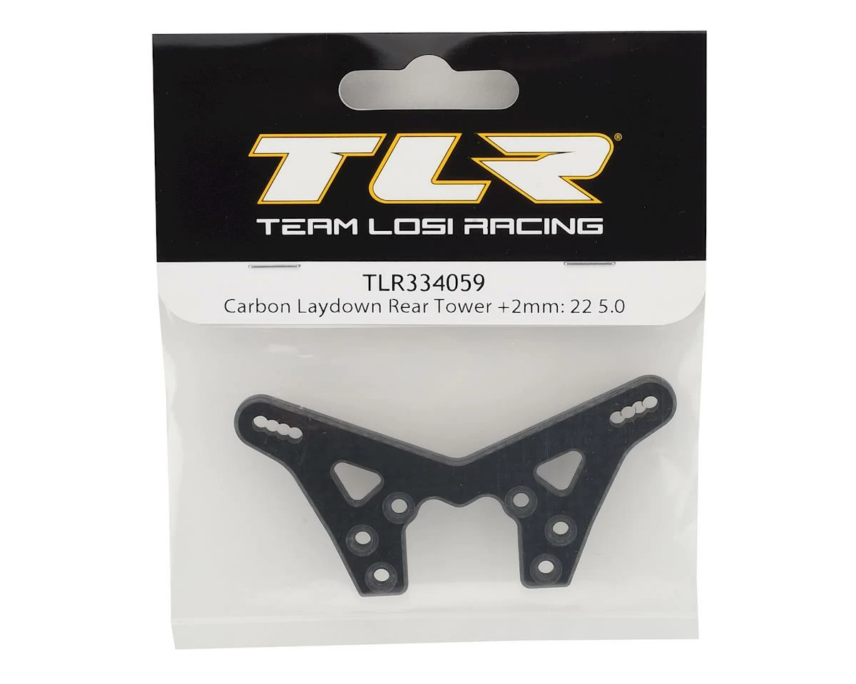 This is a replacement Team Losi Racing Carbon Fiber Rear +2mm Laydown Tower, intended for use with TLR 22 5.0 1/10 Electric Buggy Kits equipped with the +2mm conversion kit (TLR334057).Â