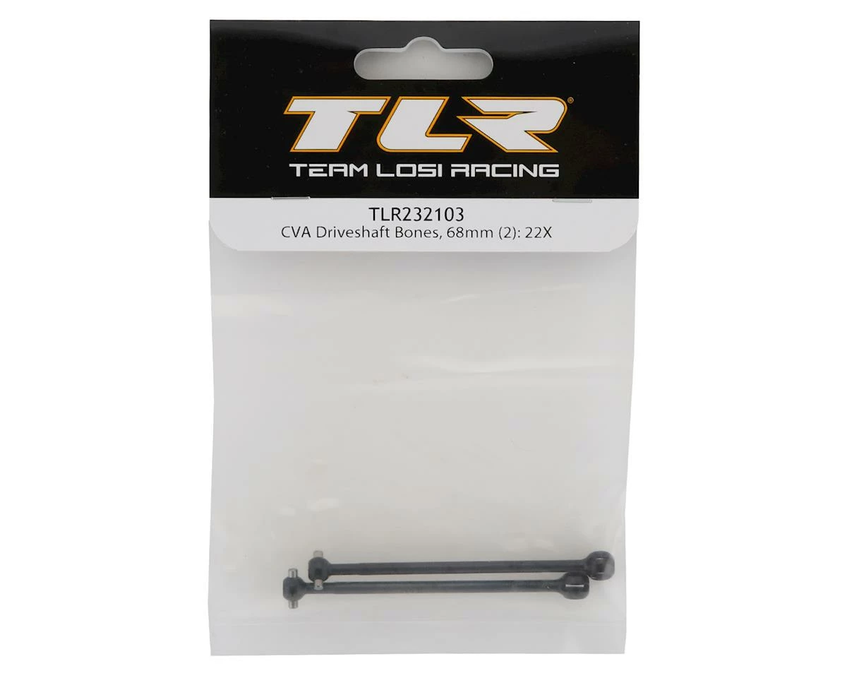 This is an optional set of two Team Losi Racing 22X-4 68mm CVA Driveshaft Bones, intended for use with the TLR 22X-4 Race Kit. These driveshaft bones are used in the front/center position.Â