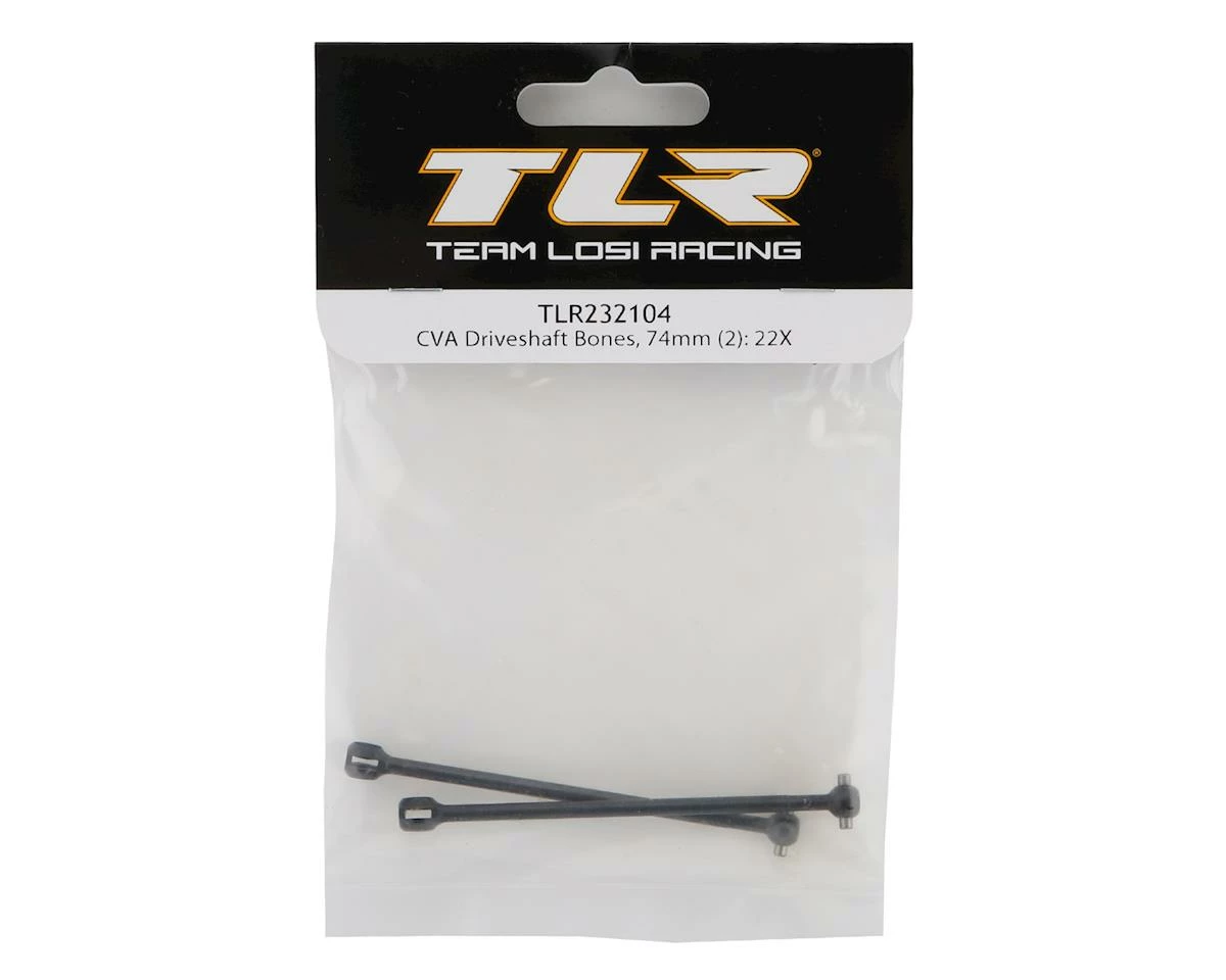 This is a replacement set of two Team Losi Racing 22X-4 74mm CVA Driveshaft Bones, intended for use with the TLR 22X-4 Race Kit. These driveshaft bones are used in the front position.