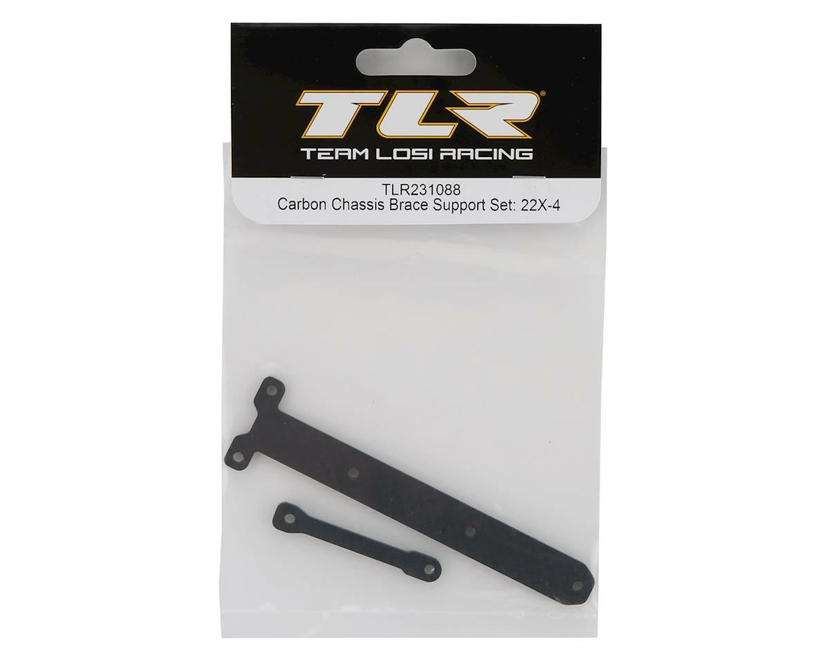This is a replacement Team Losi Racing 22X-4 Carbon Chassis Brace Support Set, intended for use with the TLR 22X-4 Race Kit. These parts are cut from quality carbon plate.